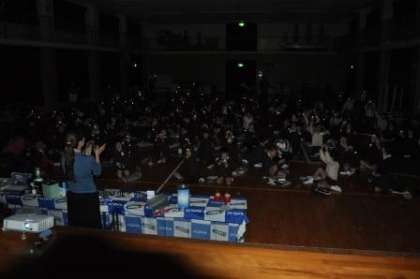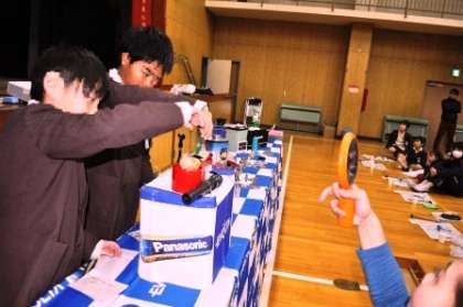 3時間目は、児童が楽しみにしていた電池の実験と手作り乾電池教室でした。じゃがいもに+極と−極を差し込み、回路でつなぐだけで、電流が流れ、電子メロディーが音楽を奏で始めたときは、みんなはびっくりしていました。手作り乾電池作りでは、いただいたキットから、部品や二酸化マンガンの粉などを取り出し、分かりやすく手順を教えていただきながら、完成させました。最後は、真っ暗な中、みごとに豆電球の明かりをともすことができました。感動の点灯式でした。