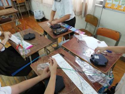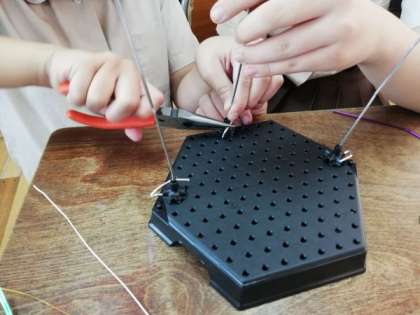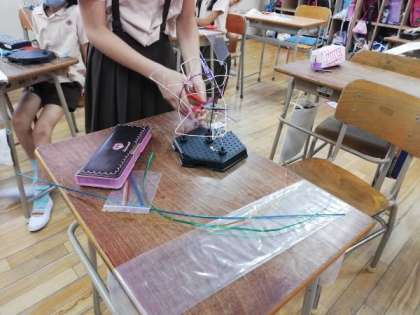 図画工作科の学習で、ワイヤーとペンチを使って作品を作りました。