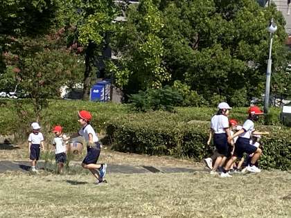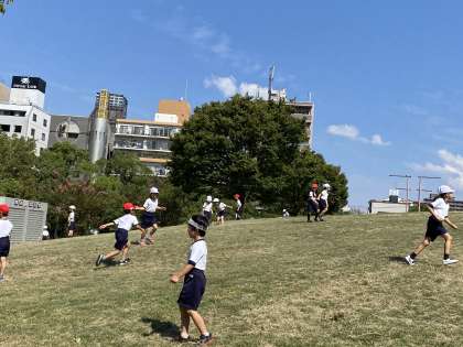 生活科の学習で扇町公園に行きました。たくさんのトンボがとんでいました。チョウやバッタ クモなどをみつけました。