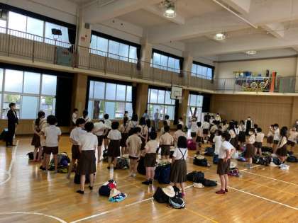 元気に登校した5年生。みんなとてもワクワクした様子でした。