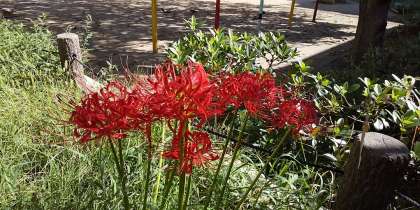 例年から一週間ほど遅れてですが、学校の近くの公園で、ヒガンバナが咲きだしました。赤に混じって黄色のヒガンバナもあります。読書に学習にとってもいい季節です。たくさん本を読んでほしいと思っています。