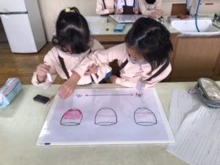 2年生では、「水を入れたグラスをたたいてみると、いろいろな音がする。」という気づきから、「水の量とグラスをたたいた時の音には関係があるのかな。」という問題を見つけ、調べる学習を行いました。