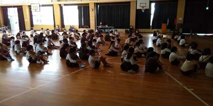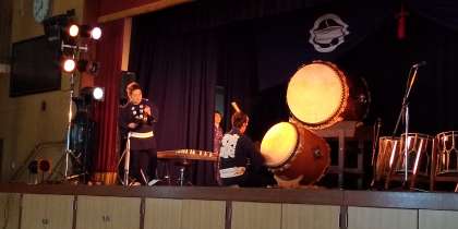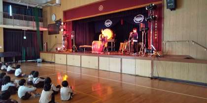 区役所にお世話になって、本年度は芸術鑑賞会として、和太鼓の演奏を聴かせていただきました。