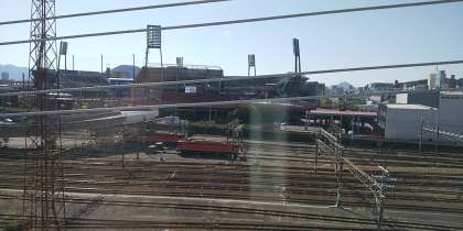 10時40分広島駅に到着しました。途中マツダスタジアムの横を通りました。いま、広電に乗っています。全員元気です。