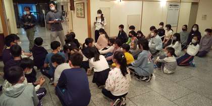 避難訓練で避難経路を確認しました。六時から夕食です。