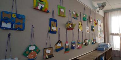 釘やボンド、板を使って壁飾りを作りました。