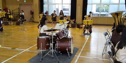 9時15分頃になったら、校長先生がアルコール消毒をしながら、窓を締めに来てくださいます。毎週土曜日の午前中に全体練習をしています。本年度はコロナウイルス感染症のため、いろいろなコンサートの出演が減り、練習の成果を発表する場が少なく残念に思っています。11月28日(土)にジュニアバンドの保護者の方を対象にした「autumun コンサート」を開催します。