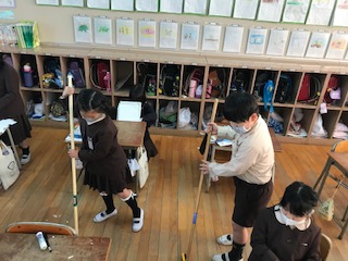 学習の最後には、頑張って作品を仕上げた人から、教室をきれいに掃除していました。
