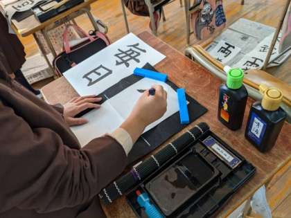 4文字の言葉を自分で選び、手本を見ながら丁寧に書くことができました。