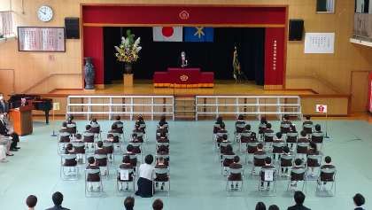 緊張の面持ちの中、本校105期生43名の新入生が会場の講堂に入場すると、会場は大きな拍手に包まれました。校長式辞にしっかりと耳を傾け、これから始まる小学校生活に胸を膨らませ、小さな瞳を輝かせていました。