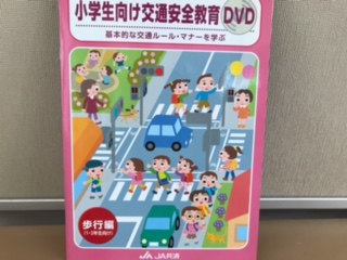 今日は、お天気の関係で『交通安全教室』は教室で学習しました。曽根崎警察署からお借りしたDVDを観ながら、「歩行の仕方・自転車の走行のルール・雨の日の歩行」など、いろいろな交通ルールを学びました。