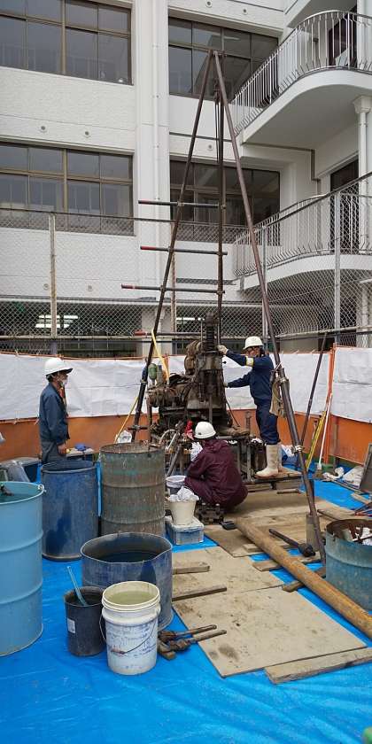 歴代の校長先生のたっての願いであったエレベータが令和5年の春には完成します。この工事は5月17日で終了し、その地質のサンプルをもとに杭を打ち込んだり強度を保ったりするエレベータの設計が始まります。ジュニアバンドの皆さん、これで重いチューバなどの楽器を運ぶのが少しは楽になるかなあ。