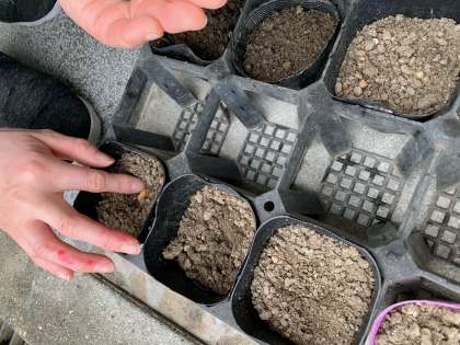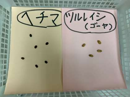 先日、ヘチマとツルレイシ(ゴーヤ)の種が届き、今朝はその種を見たり触ったりして観察しました。その種を放課後に植えました。芽が出るまではこの小さなポットで育てながら観察していきます。