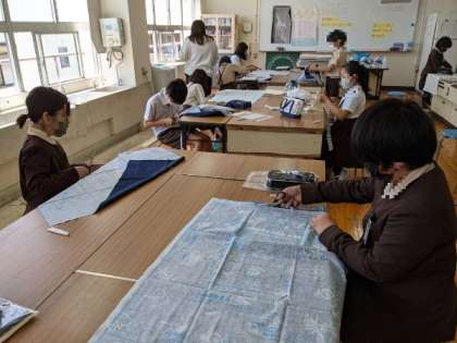 6年生の家庭科の学習でエプロン作りが始まりました。