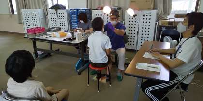 新形コロナウイルス感染症の予防のため、遅れていた歯科検診を実施しました。これで、すべての検診が終わりました。順番を静かに待ち、歯科校医さんの検診に大きな口を開けていました。