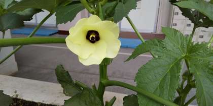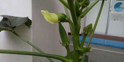 ムラサキクンシランが咲き終わり、今はカンナが黄色い花を咲かせています。オクラの淡い黄色の花も咲いていました。梅雨から夏への季節の変化を感じますね。