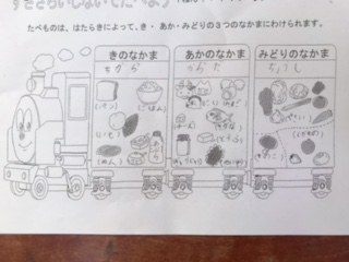 次に、食べ物の働きによって黄・赤・緑の3つのなかまに分けられることを知りました。