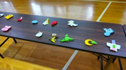もうすぐ修学旅行に出発します。手作りのマスコットを大きなカバンにつけて、目印にします。家庭科の時間に作りました。