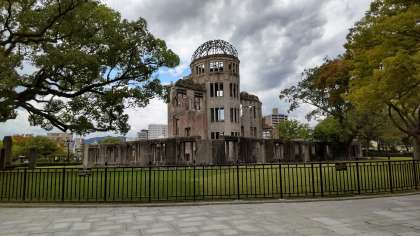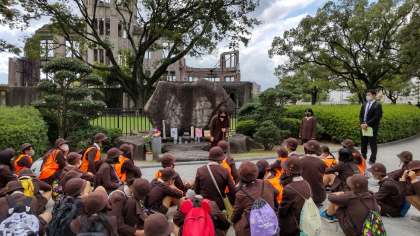 原爆ドーム前の慰霊碑の前で、平和の祈りを捧げました。