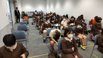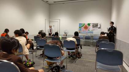 雨が降ってきましたので、資料館にお願いして伝承講話を早めてもらいました。今から一時間平和の学習をします。