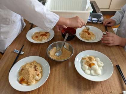 きなこかみたらしにつけて、おいしく黙食で頂きました。
