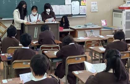 せっかく調べてわかったことを自分たち以外の人にも知ってもらうために,「低学年の子たちに教えてあげよう」という話が出ました。低学年の子たちにもわかりやすいように,リーフレット,パワーポイント,紙芝居を用意し,1・2年生の教室へ説明に行きました。