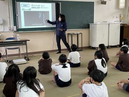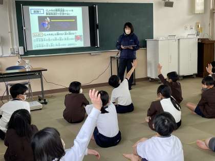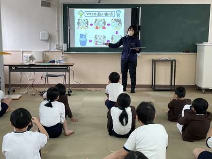 3学期の発育測定を実施しました。測定の前に「咳エチケットって何?−正しいマスクの使い方−」と題して、保健指導を実施しました。いくつかの実験結果や動画を見ながら、飛沫の広がり方やマスクの効果を学習しました。最後にスーパーコンピューター「富岳」のシミュレーション動画を見ながら、マスクの種類で飛沫の量が違うことも確認しました。