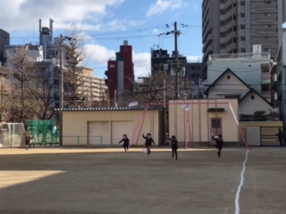 運動場に出て、さあ、たこあげです。「めちゃ高く上がった!」「おもしろい!!」など、友だちと協力しながら楽しんでいました。本日、「たこ」を持ち帰りました。機会がありましたら、でひ、いっしょに楽しんでください。