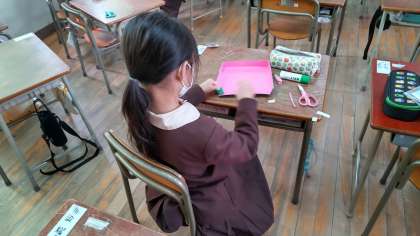 作品展に向けて、学校休校した分を取り返そうと頑張っています。
