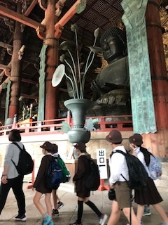 興福寺を通って東大寺に向かいました。その後広い芝生の公園でお弁当を食べました。