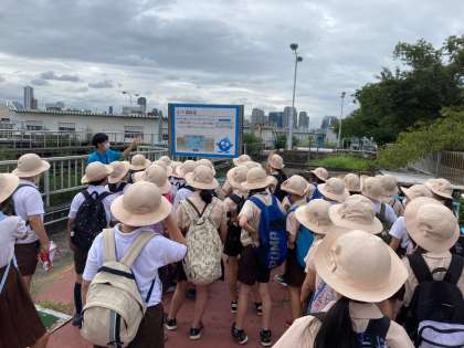 浄水場見学では、大きな水槽などを見て驚きの声をあげたり、いくつもの水槽を通るたびにきれいになっていく水を見て感心したりと、興味深く学んでいました。