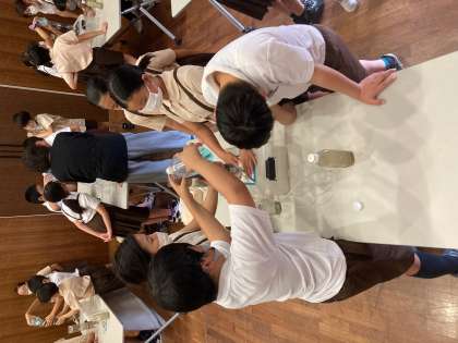また、模型を使って、実際に水がきれいになっていく様子を体験する実験では、班で仲良く活動し、きれいになった水を見て感激していました。