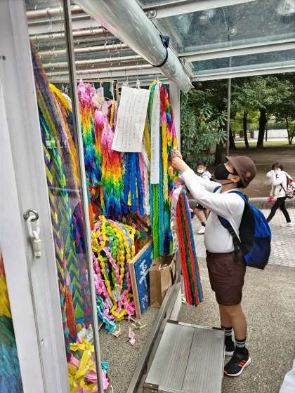 1年生から6年生まで、みんなで折った鶴を奉納します。