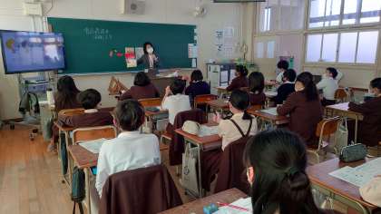 今年度2回目の栄養指導がありました。ポテトチップスのパッケージを見ながら、食品表示には何が記載されているのかを確認しました。「じゃがいもと油はどちらが多いですか?」「ごまアレルギーの人は食べられますか?」など、クイズに答えながら、どこを見たら何が記載されているのかを知ることができました。