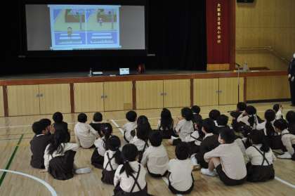 曾根崎警察の方にお越しいただき、交通安全教室を行いました。