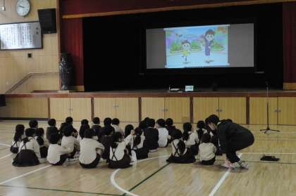 DVDを見ながら、クイズ形式で交通のルールについて学ぶことが