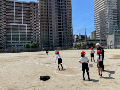 はるかに広いグラウンドで、思いっきりソフトボールを投げたり、50mを力いっぱい走ったりと久しぶりにひろーーいグランドで活動できて満足そうでした。