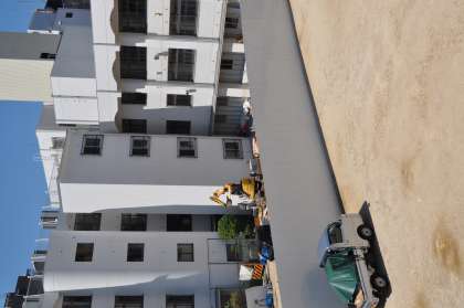 ここにきて、エレベーター棟が出現しました。今まで幕に覆われていたのですが、全貌が見えてきました。いよいよ完成に近づいてきました。