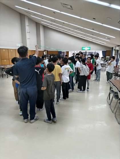夕立のため、6年生は予定を変更して室内ゲームをしています。