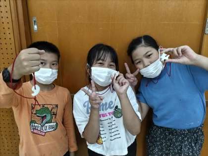 散策のあと勾玉づくりをした5年生もどうやら仕上がったようです。