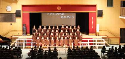 修学旅行で訪れた広島で平和についてまなび、そして平和とは何か考えました。平和を願う人々がつないでくださった”いのち”に感謝の気持ちをこめて伝えました。