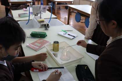 今回は、空気の出入りとものの燃え方の関係について確かめました。