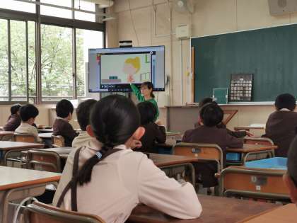 本日の英語学習では、アルファベットの歌を歌った後、「Good Morning!」の動画を見ながら身近な場面で使う英語を先生に続いて話していました。