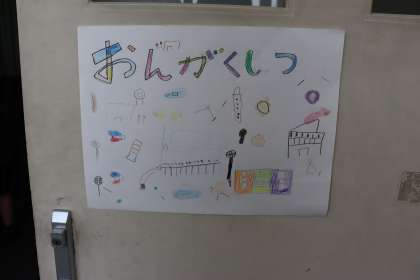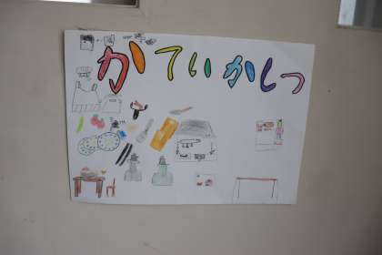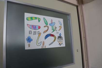 2年生が漢字の読めない1年生のために、教室の看板を作っていました。