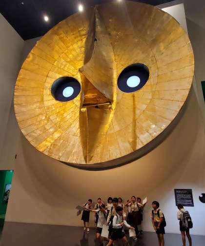 昼食のあと、「EXPO70 パビリオン」を見学。50年前の万博の雰囲気や展示物、「初代 太陽の塔の顔」など、貴重な資料を見ることができました。