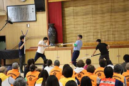 教員に向けては、実際に不審者が入ってきた時の対応を実践を交えて教えてもらいました。