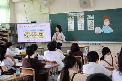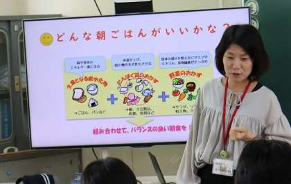 朝ごはんの働きから始まり、栄養バランスについて学習し