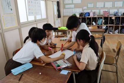 高学年を中心に、ゲームで使う物の準備をしたり看板を作ったりしました。