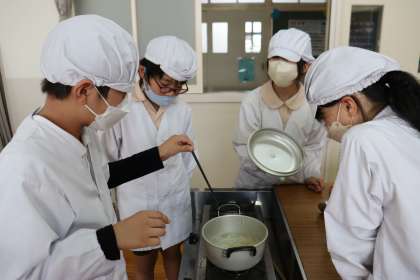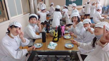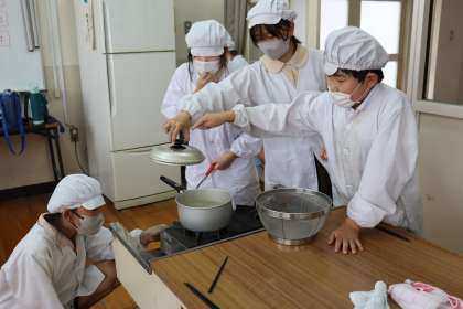 グループの友だちと協力しながら、火加減に気を付けたり、じゃがいもに火が通っているのかをおはしで確かめたりして作りました。