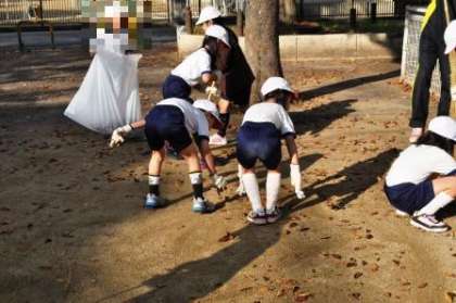 本日、1年生と2年生で、菅北公園のそうじをしました。落ち葉がいっぱい落ちていて、たくさん集めました。